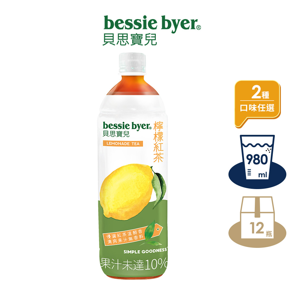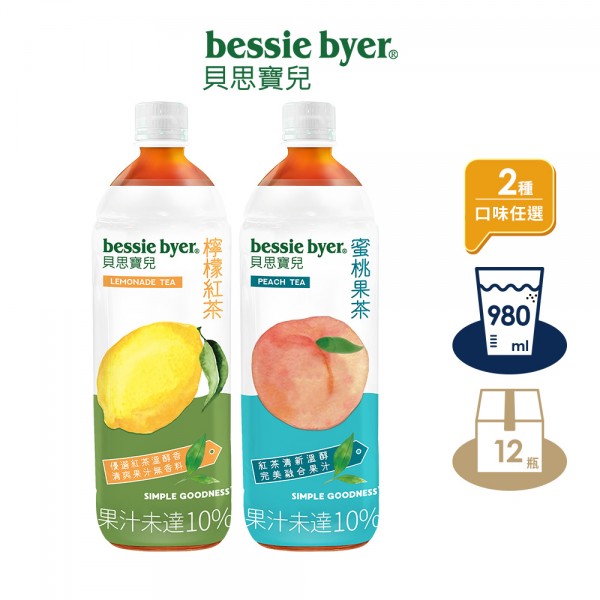 【貝思寶兒】檸檬紅茶、蜜桃果茶 980mlx1箱 (共12入)